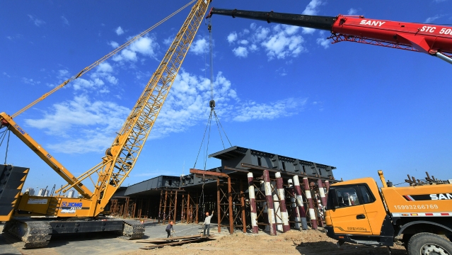 七一路跨沙潁河大橋安裝鋼結(jié)構(gòu)橋體