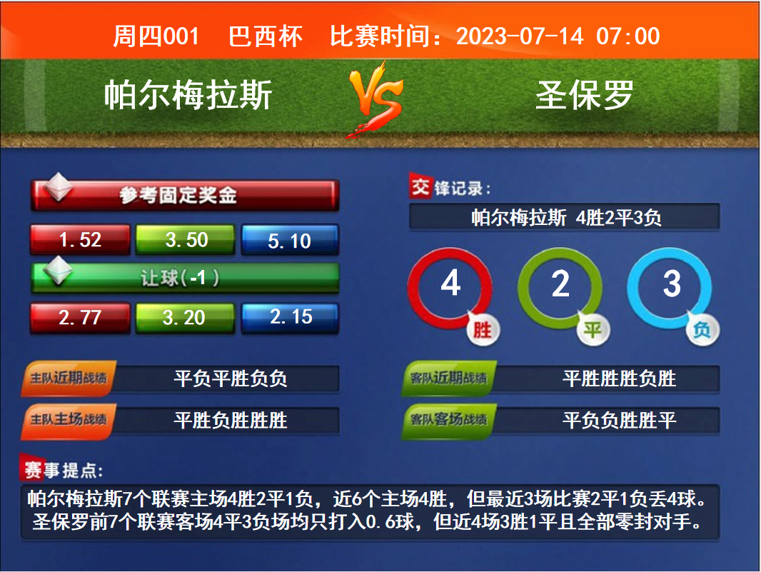 周四競彩足球強檔:帕爾梅背水一戰(zhàn) 圣保羅防守效率高……[詳細(xì)]