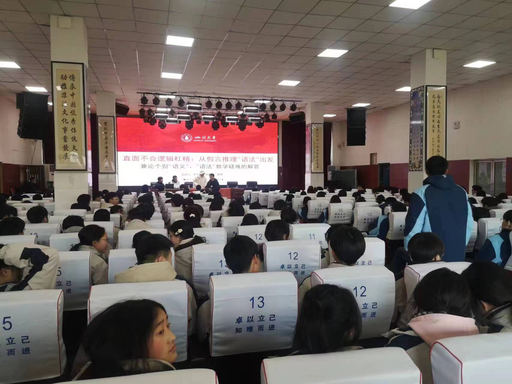 1月24日、25日,四川大學(xué)邏輯、科學(xué)與文化研究所的邏輯學(xué)普及研究與實(shí)踐團(tuán)隊(duì)前往周口市扶溝高中和陳州高中,舉辦了以“直面不合邏輯的杠精:從假言推理‘語(yǔ)義’出發(fā)”為主題的公益講座。[詳細(xì)]