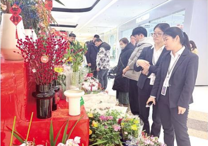 春節(jié)臨近,我市中心城區(qū)各大商超年味漸濃,年宵花專區(qū)成為亮點(diǎn)。蝴蝶蘭、冬青等年宵花爭奇斗艷,造型喜慶的“抱抱桶”備受青睞。市民在采購年貨的間隙,紛紛選購心儀花材,裝點(diǎn)家居、寄托期許。