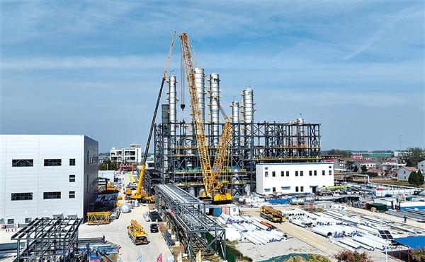10月24日,在河南金丹乳酸科技股份有限公司年產(chǎn)15萬噸聚乳酸項目建設(shè)現(xiàn)場,一臺800噸級塔吊正在繁忙作業(yè)。