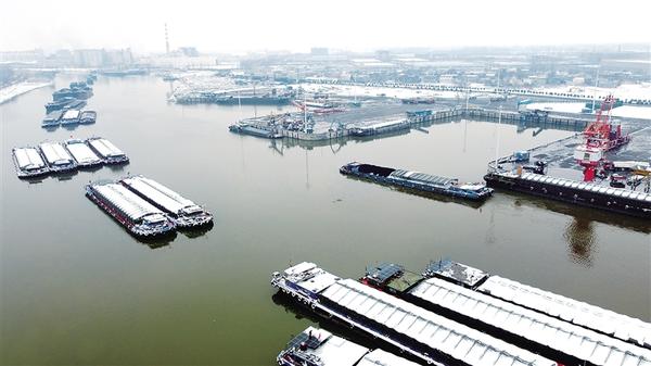 雪落沙潁河,潮涌新征程。1月1日,新年第一天,周口中心港范營(yíng)作業(yè)區(qū)碼頭上,工人有條不紊地裝卸著各類(lèi)貨物。河面上,待泊的貨船排起長(zhǎng)隊(duì),船民們細(xì)心清理船上的積雪。另有滿(mǎn)載貨物的貨船鳴笛啟航,駛向遠(yuǎn)方。