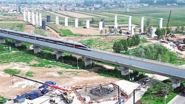 9月15日,中鐵十局的工人們在安裝轉體橋上承臺鋼筋,為澆筑做準備。位于周口中心城區(qū)的平漯周高鐵轉體橋經(jīng)過5個月的地下基礎施工,目前轉入地面以上橋墩施工階段。