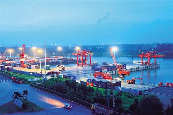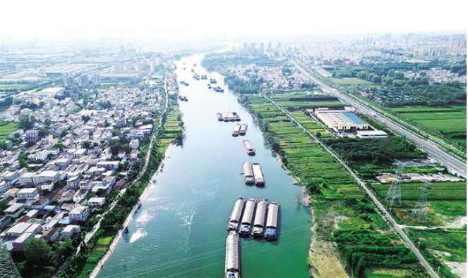 8月22日下午,沈丘縣城東側(cè)沙潁河段,貨船鱗次櫛比,或??亢降肋呅ⅲ蜷_足馬力前行。