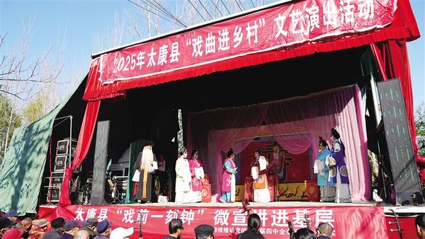 初冬時節(jié),陽光和煦。近日,太康縣道情劇團開展送戲下鄉(xiāng)活動,在轉(zhuǎn)樓鎮(zhèn)周莊村為群眾上演了《珍珠塔》《王金豆借糧》等經(jīng)典道情劇目,豐富了群眾的精神文化生活。