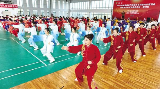 參賽隊員在比賽中。近日,2025年全國健身氣功助力鄉(xiāng)村振興志愿者服務(wù)暨百城千村展演交流展示活動·周口站在周口市體育中心老年館拉開帷幕,來自我市健身氣功協(xié)會24個站點的代表隊及周口高校的5支大學(xué)生參賽隊共200余人齊聚一堂,在五禽戲、八段錦、大舞、導(dǎo)引養(yǎng)生功十二法四大項目40個小項中展開精彩角逐。