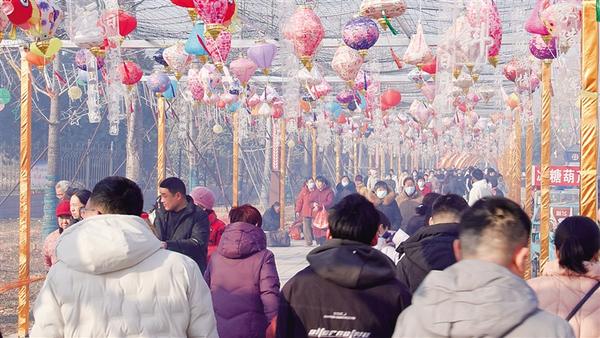春節(jié)期間,項城市南頓故城景區(qū)人頭攢動,處處洋溢著喜慶的節(jié)日氣氛。圖為游客盡享美好時光。