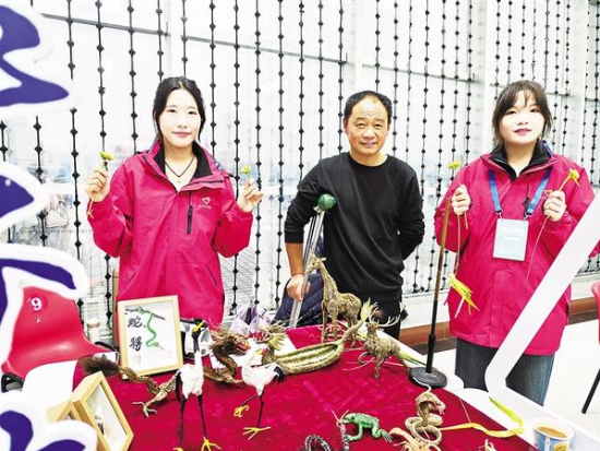 在周口市非物質(zhì)文化遺產(chǎn)展示館的棕編作品展柜里:中國龍鱗爪分明,劍齒虎威風(fēng)凜凜,螳螂伸足欲捕食……這些栩栩如生的作品,均出自非遺棕編技藝第三代傳承人朱洪濤之手。