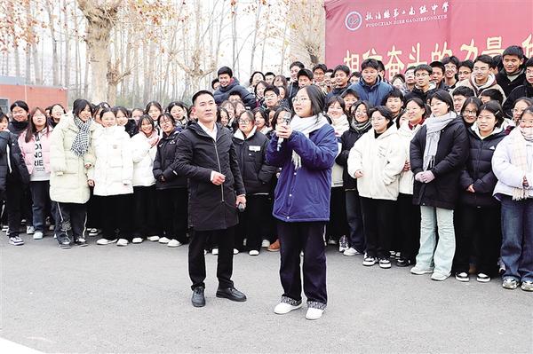 12月20日,黨的二十大代表、全國最美教師劉秀祥(前左)到扶溝縣第二高級中學(xué)開展“弘揚(yáng)踐行教育家精神”“傳承紅色基因、學(xué)思踐悟中國共產(chǎn)黨人精神譜系”活動,結(jié)合自己的成長經(jīng)歷,引導(dǎo)學(xué)生立報國強(qiáng)國大志向、做挺膺擔(dān)當(dāng)奮斗者。