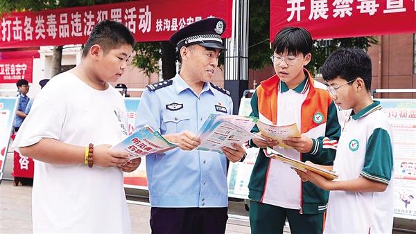 6月26日是第38個國際禁毒日,扶溝縣公安局民警向青少年講解毒品的危害。當日,我市多地展開宣傳和教育活動,引導人民群眾特別是青少年懂法守法,推動“健康人生,綠色無毒”理念深入人心。