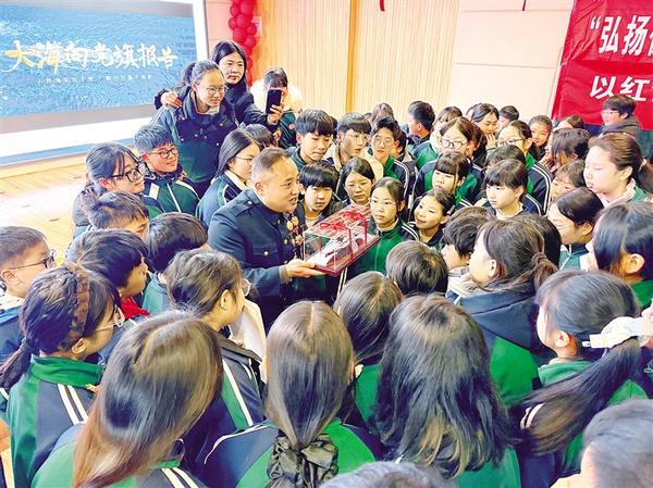 近日,退役軍人張千在商水縣第一高級(jí)中學(xué)的講臺(tái)上為學(xué)生講述人民海軍從無(wú)到有、由弱變強(qiáng)的壯闊征程。