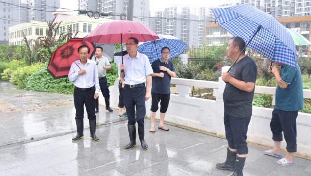 7月22日,開發(fā)區(qū)黨委書記王文峰帶領(lǐng)區(qū)直有關(guān)部門檢查河道及城市道路防汛工作。開發(fā)區(qū)管委會副主任李鵬,副調(diào)研員趙愚、王靜等參加活動。