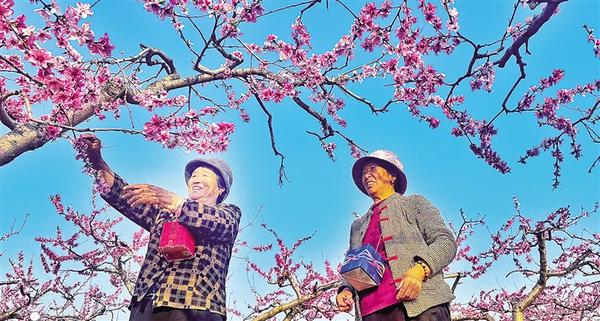 4月1日,扶溝縣固城鄉(xiāng)秦嶺行政村的一個桃園內(nèi),果農(nóng)正對桃花進行人工輔助授粉,以提高坐果率,全力保豐收。