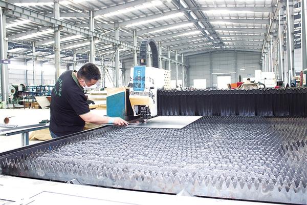 日前,在位于太康縣開發(fā)區(qū)的河南銀星畜牧設(shè)備有限公司生產(chǎn)車間,工人對(duì)鋼板進(jìn)行切割作業(yè)。