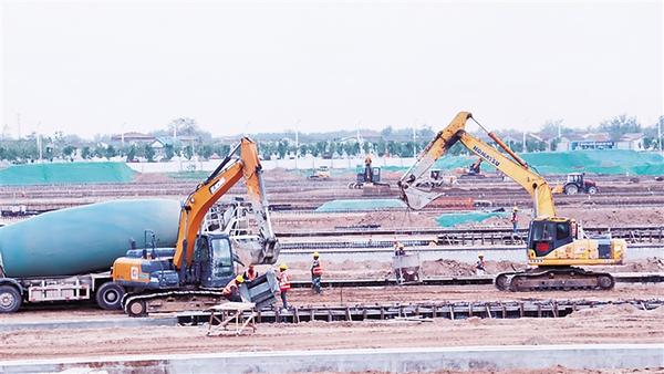 4月25日上午,在周口中心港小集作業(yè)區(qū)堆場建設工地上,工人們正緊張施工。據(jù)了解,周口中心港小集作業(yè)區(qū)將于今年年底投入運營,作為港口的重要配套工程,堆場建設正有序推進。