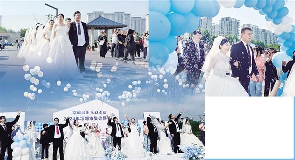 為慶祝新中國(guó)成立75周年,大力推進(jìn)移風(fēng)易俗,倡導(dǎo)新型婚育文化,9月24日,以“家國(guó)同慶、見證幸?!睘橹黝}的2024年項(xiàng)城市集體婚禮在該市吉祥湖公園舉行。當(dāng)天,來(lái)自不同行業(yè)、不同崗位的12對(duì)新人喜結(jié)連理,用實(shí)際行動(dòng)爭(zhēng)做文明新風(fēng)的倡導(dǎo)者、踐行者、推動(dòng)者。圖為集體婚禮現(xiàn)場(chǎng)。 ...[詳細(xì)]