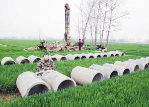 ?、?月23日,扶溝縣大李莊鄉(xiāng)常崗村村民正在田間打井。入春以來,大李莊鄉(xiāng)利用爭(zhēng)取到的資金,大力實(shí)施基本農(nóng)田灌溉工程,切實(shí)解決部分農(nóng)田地塊的澆灌難題,為奪取夏糧豐收奠定扎實(shí)基礎(chǔ)。