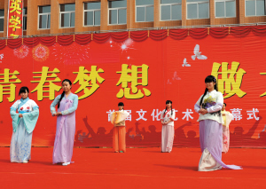 該校把特色教育作為發(fā)展的名片,推出“一班一品一特色”活動。學校建立以班級為單位的社團組織,并細分為體育類、舞蹈類、樂器類、美術類四大類別,共70個社團。比如:美工社團制作漢服進行表演,每一次都讓在場的觀眾潸然淚下,為自己是一個漢唐中華子孫而驕傲,為著漢唐服裝而自豪。學校出版了《求真大課堂》《走在成長的路上》《花季無悔》《中學生科技創(chuàng)作》《班主任德育思想錄》《國學之蘊》《家和萬事興》《共創(chuàng)一個夢 和韻文昌之家校共建》《“文昌杯”文明我先行 共筑一個夢》主題征文作文選等校本教材。為豐富校園文化生活,學校邀請中國政法大學的霍登科,歷史文化學者王少清,青少年心理教育專家張海選、萬禮彬,周口市中心醫(yī)院婦產(chǎn)科主任楊莉,河南國學院的施柳貞、王福琪、楊茹梅以及國內外優(yōu)秀大學生對學生進行國學誦讀和教育、演講比賽、法制教育、夢想目標教育、青春期心理和生理教育等活動。在該校首屆“做大成教育 展青春夢想”文化藝術節(jié)活動中,有一項活動叫珍藏十年“心愿瓶”,當滿載學生夢想的心愿瓶準備珍藏時,晴天出現(xiàn)了彩虹,讓在場的領導、家長、學生很驚嘆,說文昌中學的學生目標遠大,定有大才出現(xiàn)。這些有意義的活動對廣大未成年人的身心健康起到了很好的促進作用。