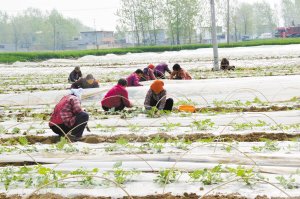 昨日,瓜農(nóng)正在為西瓜苗壓秧、修剪。在周營鄉(xiāng)趙寨村,大棚種植戶王中紅種植的溫棚覆膜西瓜,由于種植科學(xué)、品種優(yōu),所以長勢(shì)喜人,預(yù)計(jì)5月中旬就能上市。(記者 韋偉 通訊員 王祥宇 幺佳 攝)