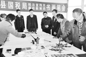 4月24日,商水縣國(guó)稅局舉辦了稅收宣傳月廉政教育月書(shū)畫(huà)筆會(huì)。該縣十余名書(shū)畫(huà)愛(ài)好者揮毫潑墨,用翰墨丹青助力稅收宣傳。劉恒毅 攝