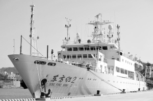 “東方紅2號”海洋綜合調(diào)查船赴南海進(jìn)行科學(xué)考察      5月10日,“東方紅2號”調(diào)查船在國家海洋局青島海洋科學(xué)考察基地碼頭整裝待發(fā)。當(dāng)日,“東方紅2號”海洋綜合調(diào)查船從國家海洋局青島海洋科學(xué)考察基地啟航,赴南海進(jìn)行為期兩個月的科學(xué)考察。新華社記者 張建松 攝