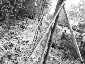 上圖 負(fù)責(zé)清掃周口大道段的環(huán)衛(wèi)工把垃圾倒在周口大道路邊的河溝中(幼兒師范學(xué)校北側(cè)100米路西),而距此不遠(yuǎn)的嵩山路口(周師北墻外)就有一個垃圾中轉(zhuǎn)站。