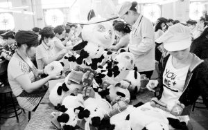 廣西各地就業(yè)呈現(xiàn)“鳳還巢”      廣西靈山縣婦女在生產(chǎn)外銷歐美的兒童玩具(4月29日攝)。近年來(lái),廣西各地婦女就業(yè)呈現(xiàn)“鳳還巢”局面,不少在廣東、福建、浙江等地打工的人員,利用所學(xué)技能回鄉(xiāng)創(chuàng)業(yè)。抓住這一契機(jī),廣西投入十幾億元建設(shè)200多個(gè)“巾幗科技示范基地”,為廣大婦女創(chuàng)業(yè)、就業(yè)搭建平臺(tái)。新華社發(fā)