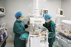業(yè)務副院長王芳、護士長李芳在檢查新生兒體征
