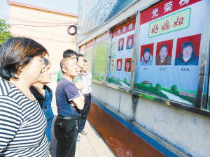 上圖  昨日上午,商水縣巴村鎮(zhèn)上城村村民正在圍觀“好媳婦”、“好婆婆”、“好孝子”光榮榜。據(jù)了解,被評(píng)為“全國(guó)文明村”、“河南省生態(tài)文明村”的上城村,已連續(xù)3年開展“好媳婦”、“好婆婆”、“好孝子”評(píng)選活動(dòng)。(喬連軍 攝)