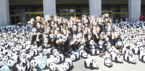 熊貓軍團“占領(lǐng)”首爾 5月23日,在韓國首爾,展覽工作人員與紙制大熊貓合影。當日,1600只紙制大熊貓在位于首爾市中心的世宗文化會館前亮相?!凹堉拼笮茇埵澜缰谩被顒觿?chuàng)辦于2008年,由世界自然基金會和法國藝術(shù)家保羅·格蘭金聯(lián)合發(fā)起,以回收的廢紙和雞蛋殼為材料,設(shè)計制作1600只形態(tài)各異、表情豐富的大熊貓,目的是推廣保護大熊貓和民眾的環(huán)保意識。新華社發(fā)