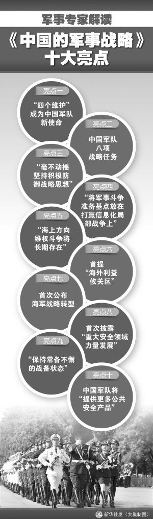這是自1998年以來(lái)中國(guó)政府發(fā)表的第九部國(guó)防白皮書(shū),也是首部專門闡述中國(guó)軍事戰(zhàn)略的白皮書(shū)。