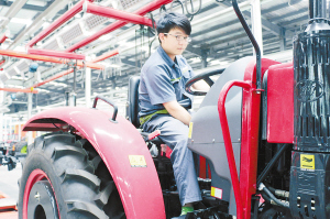近年來,扶溝縣圍繞產(chǎn)業(yè)集聚區(qū)功能集合構建,著力推進要素平臺建設,全面提升產(chǎn)業(yè)集聚區(qū)配套功能和承載承接能力,實現(xiàn)了機械制造產(chǎn)業(yè)集群的快速壯大和健康發(fā)展。圖為該縣一機械有限公司員工正在生產(chǎn)線上調(diào)試輪式拖拉機。(盧付昌 攝)