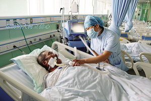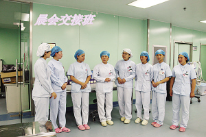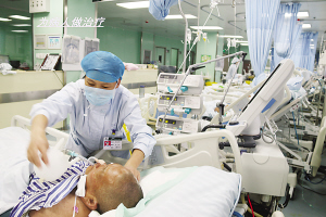 當然,護理工作并非一帆風順。眾所周知,ICU收治的都是重癥患者,患者大多數(shù)都有精神障礙,譫妄、昏迷、煩躁不安等狀況很常見,這就需要護士們充滿耐心和愛心。張衛(wèi)華以實際行動詮釋人間大愛。2014年8月,科室里來了一名Ⅱ級肝性腦病的男性患者,已經(jīng)精神錯亂且不認人,行為非常危險。由于該病不能使用鎮(zhèn)靜藥物,當責任護士靠近患者時,患者拿起床頭柜上的一個玻璃瓶向護士砸去。作為護士長的張衛(wèi)華見此情景,臨危不懼,用自己的身軀保護責任護士。只聽見啪的一聲,鮮血順著她的臉頰流了下來,可她還是慢慢走向那名患者,輕聲向他解釋情況以安撫其情緒?;颊叩那榫w漸漸地穩(wěn)定下來,她才去處理傷口,并輕松地說:“只要沒傷著病人就好。”有一次,科室里來了一名心梗住院的老人,老人的孩子都在外地,得知老人生病住院也沒趕回來照顧,甚至連一句問候都沒有。老人除了要忍受著病痛的折磨,還要忍受對孩子們的思念。張衛(wèi)華見此情景,非常心疼,為安慰老人,上班期間她都會去陪老人聊天,哄老人開心。老人吵著不舒服的時候,張衛(wèi)華用藥緩解,同時耐心安撫老人。晚上老人因為孩子的事情,會像一個小孩兒一樣哭泣不止,張衛(wèi)華心疼地陪在老人身邊,一遍又一遍地安慰說:“別害怕,我在您身邊,我就是您的女兒。”