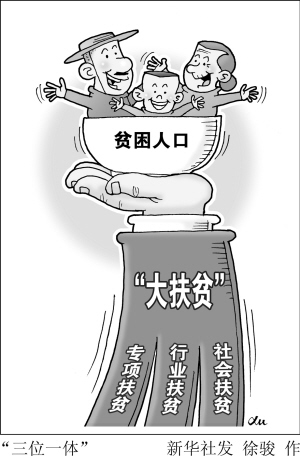 “扶貧開(kāi)發(fā)是全黨全社會(huì)的共同責(zé)任,要?jiǎng)訂T和凝聚全社會(huì)力量廣泛參與。要堅(jiān)持專(zhuān)項(xiàng)扶貧、行業(yè)扶貧、社會(huì)扶貧等多方力量、多種舉措有機(jī)結(jié)合和互為支撐的‘三位一體’大扶貧格局。”習(xí)近平總書(shū)記強(qiáng)調(diào)。     新華社發(fā)