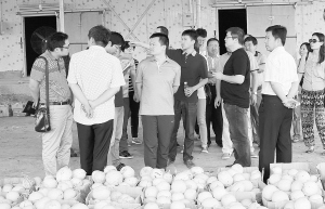 在曹里鄉(xiāng)綠橄欖蔬菜種植園區(qū),鄧錦宏詳細(xì)了解了園區(qū)種植瓜菜的品種結(jié)構(gòu)和種植面積等。當(dāng)了解到雖然該園區(qū)種植的瓜菜品質(zhì)優(yōu)良、價(jià)格實(shí)惠,但是由于缺乏信息資源,產(chǎn)品只能銷售到周邊城市,最遠(yuǎn)才銷到武漢的實(shí)際情況后,鄧錦宏表示,一定要幫助農(nóng)民把優(yōu)質(zhì)的瓜菜產(chǎn)品通過一畝田網(wǎng)上交易平臺賣到北京、上海等大城市,讓全國果蔬消費(fèi)的高端市場進(jìn)一步了解扶溝豐富的果蔬資源。在曹里鄉(xiāng)樊家蔬菜種植園區(qū),鄧錦宏一行品嘗了九九瑞紅、綠寶、羊角脆等高端瓜果,并就共建市場、暢通信息渠道、后期附加服務(wù)等與瓜菜種植戶交換意見。