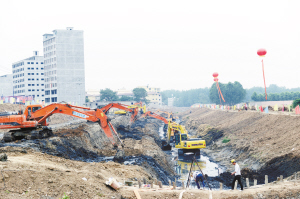 5月14日以來,在新一屆縣委的統(tǒng)一部署下,經(jīng)過廣大干群的共同努力,城區(qū)風(fēng)景河、護(hù)城河、閆溝河、鹿辛運(yùn)河、急三道河,五河河流集中整治取得了顯著成效。圖為城區(qū)急三道河第二階段清淤、雨污分離工作正在緊鑼密鼓地進(jìn)行。(閆子健 攝)