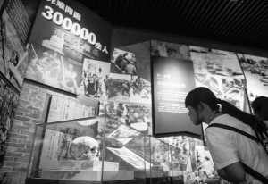 ?、?nbsp;7月12日,觀眾在中國人民抗日戰(zhàn)爭紀念館觀看“南京大屠殺”的相關(guān)史料。