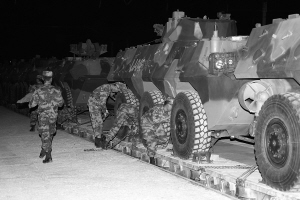 當(dāng)日凌晨,“和平使命-2010”聯(lián)合軍演中方參演部隊第一梯隊安全準(zhǔn)時抵達(dá)哈薩克斯坦境內(nèi)演習(xí)地域。新華社發(fā)