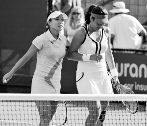 鄭潔和詹詠然今年2月開始搭檔打雙打。昨天面對兩位身高都超過1.80米的對手,她倆以穩(wěn)健多變的底線球和積極上網(wǎng)牢牢掌握著場上主動權(quán),勝得十分輕松。