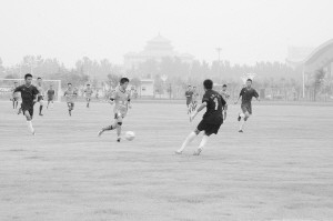 與此同時,體育館東側足球場上則上演著新疆競技隊和撫順新野隊的精彩對決。身材高大的新疆競技隊隊員的表現(xiàn)搶眼,讓周口球迷大開眼界。