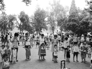 日前,周口東方愛嬰早教中心開展戶外活動,培養(yǎng)孩子從小學(xué)會“分享”和社會交往。家長們帶著食物,讓孩子和其他小朋友分食。圖為家長和寶寶在表演節(jié)目。