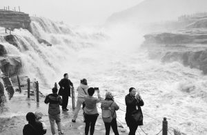 這是3月25日拍攝的黃河壺口瀑布“桃花汛”。