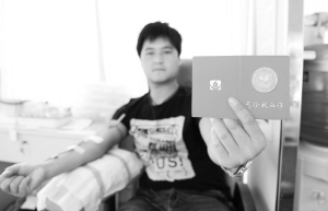 6月14日,一名參加無償獻血的河北保定市民在展示他的無償獻血證。當(dāng)日是世界獻血者日,全國多地開展主題活動,向市民普及無償獻血的意義,并號召市民無償獻血、奉獻愛心。新華社記者 朱旭東 攝